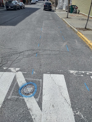 By the way, in preparation of Luizzi's DRI work this spring, the pavement surrounding the intersection of 2nd & Warren was recently decorated with a rainbow of spray-painted colors and designs. I'm thinking that during the work 2nd Street between Warren and the alley will have to be closed down for at least one week. This ought to make things interesting there for pedestrians, drivers and businesses.